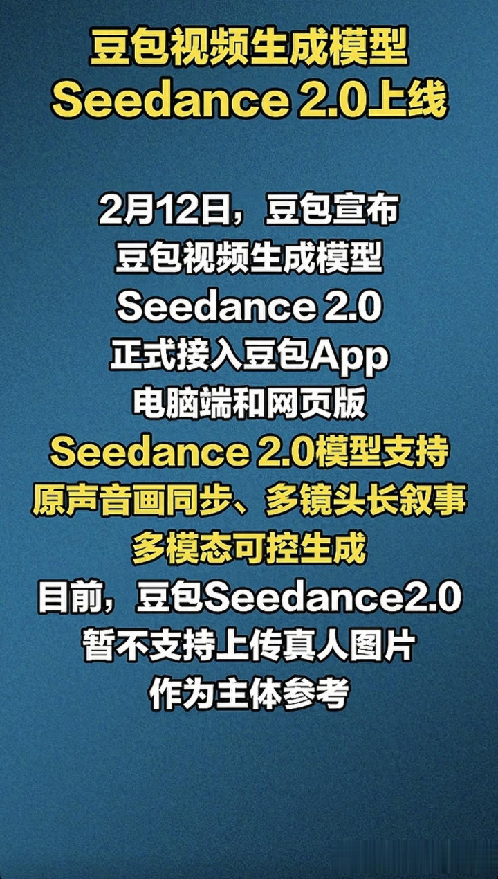 2026年2月12日,字节跳动正式官宣自研的豆包视频生成模型Seedance 2.0全平台上线,豆包App、电脑端、网页版都能直接用,即梦、火山方舟也同步开放体验,这下普通人做专业视频再也不用愁了!