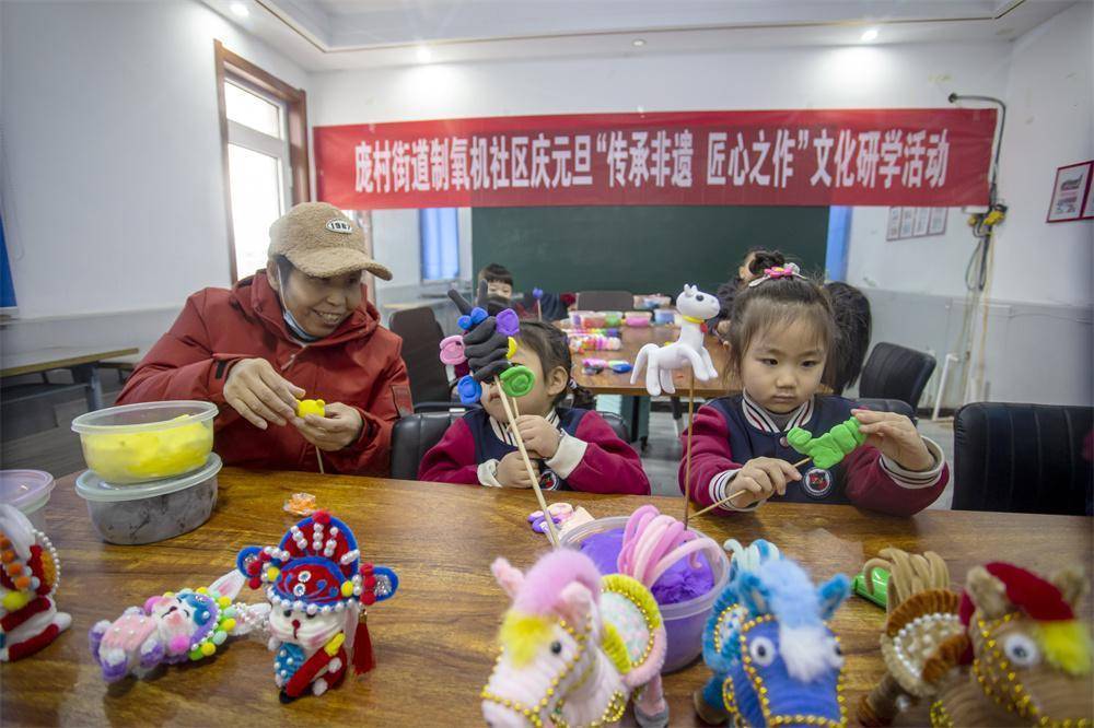 孩子们学习捏面塑。聂长青摄2026年1月4日,河北省邯郸市复兴区庞村街道制氧机社区举办“家门口的非遗课堂”活动,孩子们在这里学习舞龙、捏面塑、吹糖画,亲手制作各类手工艺品。通过趣味互动,孩子们从小感受非遗的独特魅力,在欢声笑语中传承中华优秀传统。
